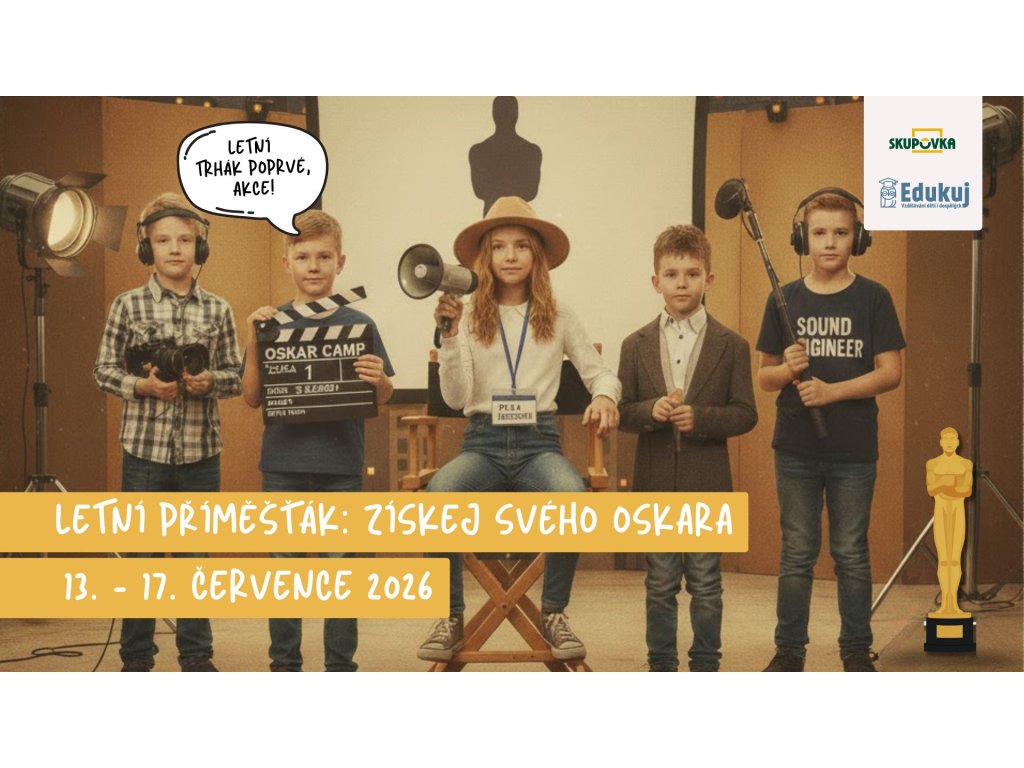 V pohodovém zázemí Skupovky letos opět organizujeme v termínu 13. - 17. července 2026 vždy od 7:30 do 16:30 příměstský tábor s tématem „Získej svého Oskara“. Tábor je vhodný pro děti od 6 let. Na programu bude kreativní tvoření, hry, fyzická zdatnost při programu. Samozřejmostí jsou super svačinky, oběd a celodenní pitný režim.